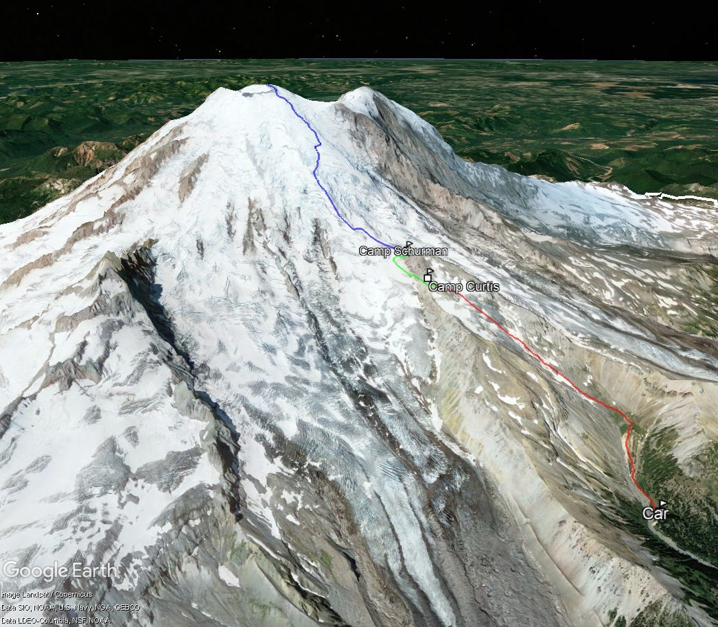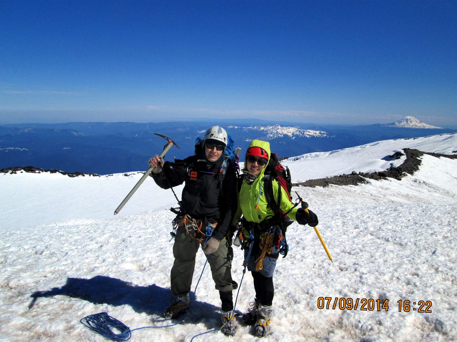 In the morning of July 9 2014, two of us moved camp from Camp Curtis to Camp Schurman. We wanted to acclimatize before summit bid next day, so we went up for a walk on Emmons Glacier, just to take a look. Of course we were geared and roped up. It was still too early when we reached half of the elevation gain, so we decided to push for the summit, which we reached at 16:22. We were back at the camp exactly at sunset. This photo was taken next day when we left back home. Mount Rainier, the highest peak in the state of Washington, was the first summit of our conquest of U.S. State High Points .